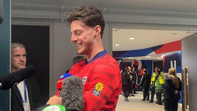 在友誼賽中主場3-0擊敗威爾士之后,英格蘭中場賴斯在混合采訪區(qū)接受了現(xiàn)場媒體的采訪。